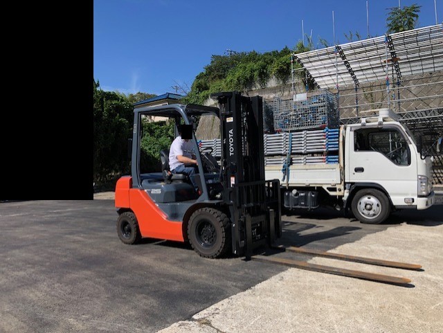 9月25日(月)、神奈川県横須賀市久里浜のお客様にトヨタ02-8FD25 サイドシフト、フォークツメ1820mmを10日間のレンタル納車致しました。